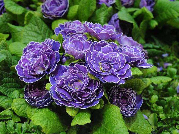 Примула Belarina Amethyst Ice (Беларина Аметист Айс). Неприхотлива, хорошо разрастается, предпочитает влажные богатые гумусом почвы. Экспозиция - кружевная тень. Листья небольшие, овальные, морщинистые, собраны в розетку. Цветоносы растут из центра розетки. Цветки крупные, до 5 см в диаметре, махровые, очень привлекательные. Цветение с конца апреля до середины мая, при благоприятных условиях возможно повторное цветение осенью.