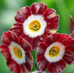 Примула ушковая Blush Baby (Блаш Бэби). Розово-красные лепестки будто посыпаны сахарной пудрой. Классический желтый глазок вносит эффектный контраст. Высота 15-20 см, листья ярко-зеленые. Цветки располагаются на коротком цветоносе 10-20 см, в соцветии из 6-7 шт. Использование: альпинарии, композиции, бордюры. В переводе означает "детский румянец".