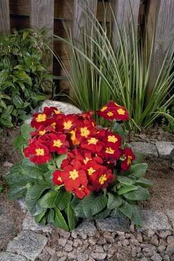 Примула Crescendo Bright Red (Крещендо Брайт Ред) — красивоцветущее влаголюбивое растение до 30 см высотой. Цветки ярко-красная, очень богатое цветение. Цветет в мае, повторно в сентябре. Абсолютно зимостойка.