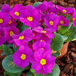 Примула Crescendo Purple (Крещендо Пёпл) — красивоцветущее влаголюбивое растение до 30 см высотой. Цветки вишневые с желтым глазком , очень богатое цветение. Цветет в мае, повторно в сентябре. Абсолютно зимостойка.