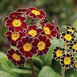 Примула Gold Lace Scarlet (Голд Лейс Скарлет). Гибрид из знаменитой сортосерии примулы полиантовой (Primula Poliantha) — Gold Laced (Silver Lace Black). Этой превосходной сортосерии более 200 лет. Пик популярности этих примул приходится на начало XIX века. Сейчас интерес к 'Gold Laced' возродился. Великолепная примула "Gold Lace Scarlet" с многочисленными мелкими цветками, красно-бордовыми лепестками с серебристым окаймлением и насыщенным желтым центром.