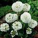 Цветки чисто-белые, собранные в шаровидные соцветия. Растение с крупными, продолговато-овальными, мелкозубчатыми, очень морщинистыми листьями, мучнистыми с нижней стороны. Цветки мелкие, до 1,5 см в диаметре, собраны в плотное головчатое соцветие до 10 см в поперечнике. Цветет с апреля 30-40 дней, обладает прекрасной зимостойкостью. В культуре с XIX века.