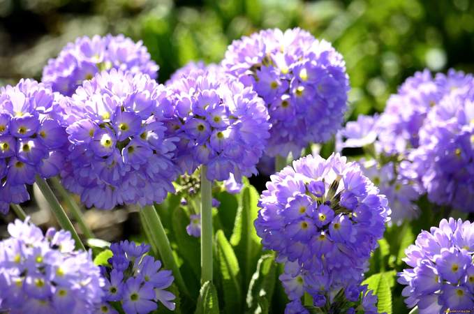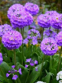 Примула мелкозубчатая Cashmeriana (Кашмериана). Цветки собраны в плотное шаровидное соцветие диаметром до 10 см, светло-фиолетовые, до 1,5 см с желтым зевом. Цветоносы толстые, с мучнистым налетом. Листья зубчатые, розеточные, удлинённые, крупные. Почва подходит влажная, рыхлая, увлажненная, богатая органикой.