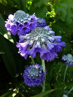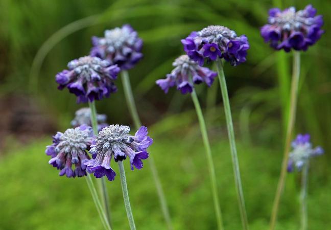 Примула Noverna Deep Blue (Новерна Дип Блу). Все в этой примуле — уникально. Изящен и красив по форме цветок-колокольчик с зубчатыми краями. Форма соцветия тоже не типична для примул — головчатая.