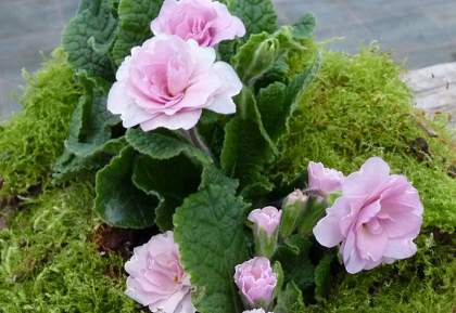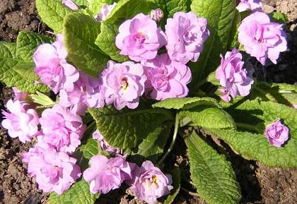 Примула обыкновенная неприхотлива, быстро образует дочерние розетки, обильно цветет в конце апреля-мае. Лучше растет на солнце, на богатой гумусом влажной почве.