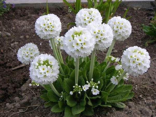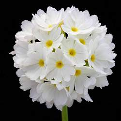 Примула Prom White (Пром Уайт). Безумно красивое растение. Она привлекает своими плотными округлыми соцветиями, состоящими из многочисленных белоснежных цветков с зубчатыми краями и с желтыми глазками. Одно растение может образовать до 10 цветоносных стеблей. Бутоны большие, цветки образуются в быстрой последовательности в течение длительного периода. Период цветения: конец апреля, в течение 30-40 дней.