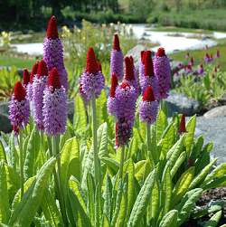 В этом растении все необычно, начиная от формы соцветия до окраски цветков. Примула Виаля — многолетнее растение с розеткой ланцетовидных листьев, длина которых достигает 30 см, а ширина 7 см. Листья неравномерно зубчатые по краю, с редкими волосками на обеих сторонах. Цветочная стрелка с мучнистым налетом длиной до 18 см, соцветие образовано колокольчатыми ярко-красными бутонами. Раскрываясь, они превращаются в розово-сиреневые ароматные цветки (1,3 см в диаметре). Первыми раскрываются цветки в нижней части "пирамидки", отчего она становится двухцветной: вверху — красные бутоны, внизу — сиреневые цветки. В условиях средней полосы примула Виаля гораздо мельче, чем в природе. Высота цветоносов около 15 см, реже до 20 см, а необычные соцветия достигают 5-7 см. Весной начинает отрастать только в конце мая. Распускание происходит постепенно, и постепенно колос меняет свою окраску. Цветет летом — в июне-июле, оно тем продолжительнее, чем прохладнее погода. Требует хороших питательных почв и дренажа. Легкая полутень также пойдет ей на пользу. Хорошо размножается семенами. Молодые примулы растут довольно интенсивно и быстро достигают фазы цветения. Зимуют эти растения в нашем регионе только с укрытием. Замечено, что примула Виаля лучше развивается, образует крупные соцветия и успешнее зимует, если высажена среди более высоких многолетников.