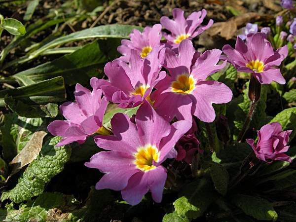 Примула Юлии Groenekans Glorie (Гронеканс Глори). Этот вид известен неприхотливостью и обильным цветением. Сорт Groenekans Glorie (Гронеканс Глори) отличается от видового растения цветками, которые гораздо крупнее. Цветки сиреневато-розового цвета с желто-зеленым глазком. В процессе цветения окраска меняется на лиловую. Листья маленькие, темно-зеленые, морщинистые.