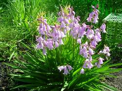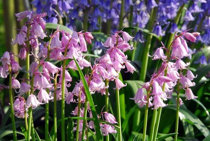 Пролеска колокольчатая Pink (Пинк). Цветет в июне розовыми колокольцами, довольно крупными, собранными на цветоносе как у гиацинта. Высота 25-30 см. Растение обаятельное, эффектное и очень легкое в выращивании. На одном месте растете много лет, не требует выкапывания. Сажать луковицы следует близко друг к другу, чтобы образовался своего рода кустик. Вразбивку смотрится хуже.