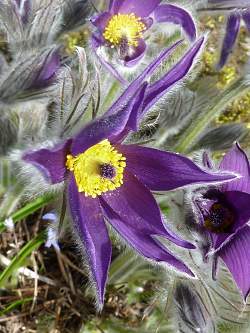 Прострел Халлера. Считается достаточно очаровательным мелким цветком, которое способно достичь высоту в тридцать сантиметров. В России данный цветок имеет другое наименование, а именно Прострел крымский. Цветет данное растение в основном около тридцати дней, с апреля по май, при этом выделяются очень мохнатые цветоносы, имеющие ярко-лиловые цветки с пышным центром желтого окраса. Прикорневые листья высотой до 10-15 см появляются после цветения.