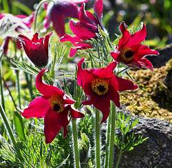 Red (Ред). Низкорослый травянистый многолетник. Цветки колокольчатые, крупные, бордовые с винным оттенком, распускаются до появления листьев. Цветет в апреле. Особую декоративность придает растению в пору плодоношения плод-многоорешек с длинными волосистыми столбиками.
