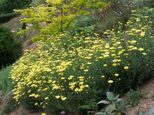 Пупавка E.C. Buxton (Е.С. Бакстон) в том же цветнике, но с другого ракурса.