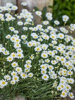 Пупавка Karpatenschnee (Карпатеншнее). Замечательный почвопокровный длительно цветущий многолетник с простыми белыми соцветиями-корзинками и нежными перистыми ароматными зелеными листьями.