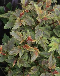 Пузыреплодник Chameleon (Хамелеон). Листья с каймой, которая варьирует по размеру, по интенсивности окраски в течение лета. Куст высотой 150 см. Цветёт в июне кремовыми цветками. Место солнечное. Хорошо подходит для групп и живой изгороди.