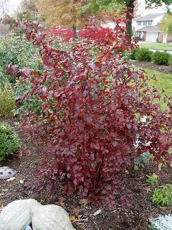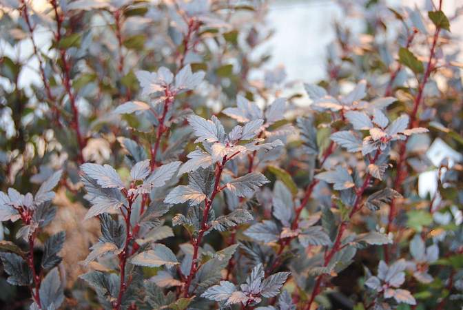 Пузыреплодник калинолистный Little Devil (Литтл Дэвил). Сорт декоративен в течение всего вегетационного периода своей листвой, цветами и плодами. Листья очень мелкие, весной ярко-красно-пурпурные. летом зеленые с пурпурным оттенком. Побеги яркие. Очень хорош. Невысокий, поэтому можно использовать как подсадку к более крупным кустарником или как доминанту в миксбордерах.