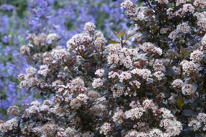 Пузыреплодник Little Joker (Литтл Джокер). Декоративный кустарник, более компактный и густой, чем другие сорта пузыреплодника. Высота 50 см и ширина 30 см. Листья мелкие, зелёно-бордово-фиолетовые, трёхлопастные, глубоко-разрезные. Цветки белые, в соцветиях, цветение в июне.