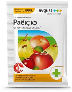 Раёк (2 мл). Высокоэффективный препарат для обработки плодовых культур от болезней. Обладает длительным профилактическим и лечащим действием. Быстро проникает в ткани растений и не смывается дождем уже через 2 часа после опрыскивания. Защищает листья и плоды. Не вызывает образования "сетки" на плодах, обеспечивает высокое качество продукции.