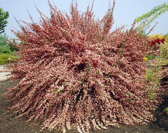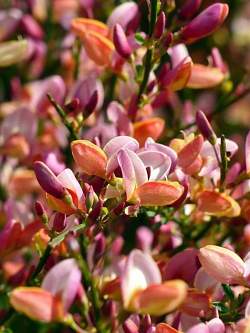 Ракитник Zeelandia (Зеландия). Цветет в середине-конце весны нежно-розовыми цветками до 3 см длиной. Очень красивый невысокий кустарник до 1,5 м высотой с тонкими, зелеными побегами, в молодости опушенными. Листья очередные, черешчатые, тройчатые, листочки овальные или продолговато-ланцетные, тупые, цельнокрайние.