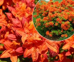 Рододендрон Golden Eagle (Голден Игл). Крона густая, компактная. Цветки желто-оранжевые, душистые. Цветение обильное. Молодые листья бронзово-зеленые, осенью оранжевые. Высокая зимостойкость, до -34°С.