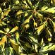 Компактный вечнозеленый кустарник с довольно широкой кроной. Побеги направлены вверх. Цветки крупные, пурпурно-фиолетовые или лиловые. Собраны в компактные соцветия. Листья кожистые, крупные, продолговато-эллиптические, длиной до 16 см, темно-зеленые, блестящие с золотисто-желтым рисунком по центру каждого листа, вечнозеленые.