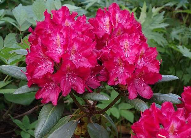 Рододендрон Kazimierz Wielki (Казимеж Велки). Бутоны высокие, красновато-коричневые. Цветки малиново-красные с жёлто-коричневым рисунком, неоново-яркие. Куст средней силы роста. Побеги толстые, жёсткие, коричневые. Листья тёмные, продолговатые, в форме лодочки. Сорт морозостойкий (-30 °С). Сорт назван в честь Казимира Великого, короля Польши.