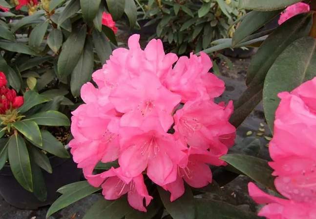 Рододендрон вечнозеленый Krolowa Bona (Кролова Бона). Цветки мягкого конфетно-розового цвета, более светлые в середине. Цветение обильное. Куст компактный, высотой до 120 см. Побеги толстые, жёсткие. Листья крупные, тёмно-зелёные. Сорт назван в честь Боны Сфорца, польской королевы, жены короля Сигизмунда I.