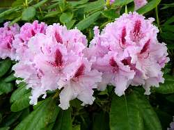 Рододендрон Le Progres (Ле Прогресс). Вечнозеленый кустарник с плотной округлой кроной. Листья светло-зеленые, слегка блестящие. Цветок нежно-розовый с волнистыми краями и большим пурпурно-красным пятном на верхней доле, 7-8 см диаметром. В шарообразном соцветии 10-12 цветков. Цветёт с конца мая до середины июня.