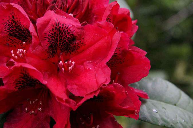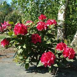 Рододендрон вечнозеленый Lord Robert (Лорд Роберт). Такой же стойкий, как и знаменитый Грандифлорум (-32 °С), только потрясающего огненно-красного цвета с темно-фиолетовым, почти черным крапом. Цветки крупные, собраны в большие округлые соцветия.