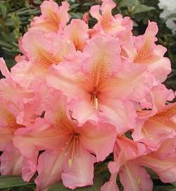 Рододендрон Orangina (Оранжина). Компактный вечнозеленый сорт, куст высотой до 100 см. Цветки оранжевые с желтым пятном. Листья ярко-зеленые, слегка блестящие. Цветет в конце мая начале июня. Предпочитает влажную, но хорошо дренированную, кислую почву, солнце или полутень. Использование — для одиночных и групповых посадок. Зимостойкость до -26 °C.