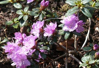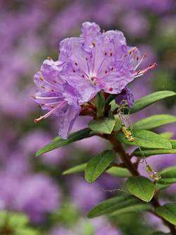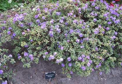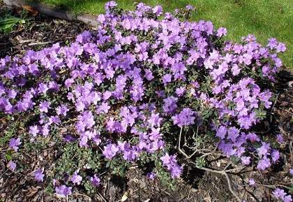 Рододендрон Ramapo (Рамапо). Гибрид рододендрона равновысокого и рододендрона Каролинского (fastigiatum x carolinianum), получен в Нью-Джерси (США) в 1940 году селекционером Нарингом.