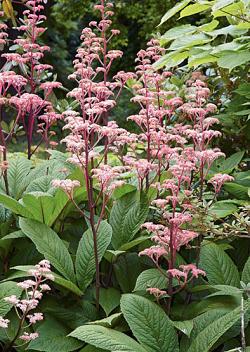 Роджерсия перистая Elegans (Элеганс) высотой не более 60 см. Молодые листья с пурпурным оттенком. Стебель сильно разветвленный. Соцветие — сложная метелка длиной 25-30 см с розовыми ароматными цветками. Цветет в течение 20-25 дней с первой декады июля. Красивый сорт.