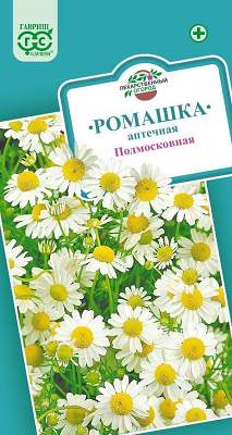 Ромашка аптечная Подмосковная. Однолетнее лекарственное растение. Стебель прямостоячий, сильноветвистый, высотой 30-60 см. Листья длиной 2-5 см, двояко-перисторассеченные на узкие нитевидные дольки, очередные, сидячие. Цветки собраны в корзинки на длинных цветоносах, расположенных на концах побегов. Вегетационный период короткий — 60-70 дней. Надземную массу убирают в период массового цветения. Для заготовки ромашку скашивают, сушат и хранят в хорошо проветриваемом помещении. Урожайность 0,5-0,7 кг/м2. Настой ромашки оказывает противовоспалительное, кровоостанавливающее, антисептическое, болеутоляющее, потогонное, желчегонное действие.