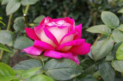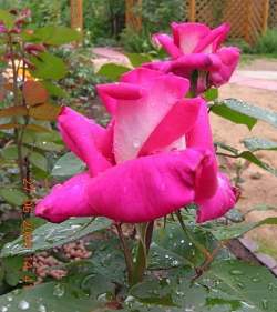 Роза Acapella (Акапелла). Выдающиеся цветки, внутри вишнёво-красные, снаружи серебристые, диаметром 9-10 см, на длинных элегантных цветоносах, очень хорошо подходят для срезки в вазы.