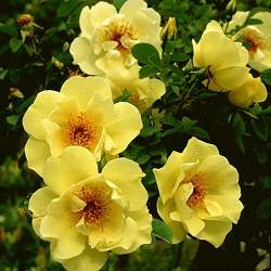 Роза Aicha (Айша). Сорт уже более 40 лет пользуется популярностью у розоводов всего мира. Трогательные золотисто-желтые цветки, с большим количеством махровых тычинок. Роза высоко устойчива к болезням и суровым зимам, обладает отличными декоративными характеристиками. Зимостойкость хорошая. Шведское общество роз рекомендует этот сорт для северной Швеции. Используется в групповых и солитерных посадках.