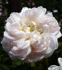 Роза Alba Maxima (Альба Максима). Белые, очень душистые цветки с кремовым центром, рыхлой розетковидной формы. Крупный вертикальный ветвистый колючий куст с голубовато-зеленой листвой. Характеризуется быстрыми темпами роста. Требует солнечного местоположения.