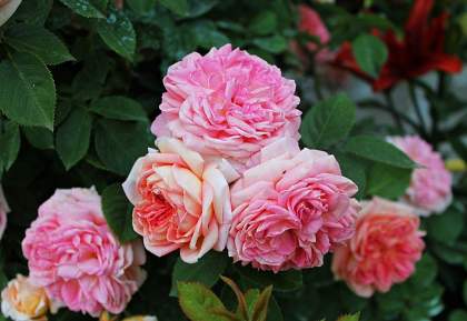 Вот так на одном кусте можно одновременно наблюдать жёлтые бутоны, красивые солнечно-абрикосовые цветы и уже отцветающие бледно-розовые экземпляры.