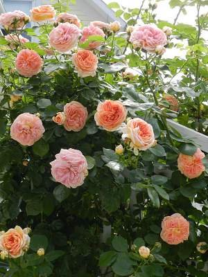 Роза плетистая Alchymist (Алхимист). Магия этой розы в её изменчивости. Она постоянно меняет цвет! Бутоны набирает ярко-желтые, потом мы видим классическую розу красивого абрикосового, медного оттенка. И в полном роспуске цветок оказывается красивой старинной формы с квадратированным центром. Цветки крупные, 10-11 см, густомахровые, держатся долго и имеют очень приятный аромат.