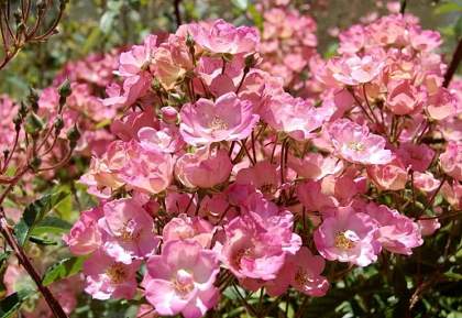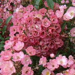Роза шраб Alden Biesen (Алден Бисен). Очень необычный сорт, издалека похож на гортензию. Огромные шапки розовых цветков с возрастом зеленеют и приобретают характерную "кожистую" фактуру. Куст плотный, ветвистый. Для ландшафтного сада просто находка, т.к. издали привлекает к себе внимание.