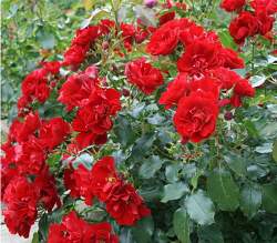 Ярчайшая сигнально-красная роза невероятно яркой и сочной окраски. Цветок полумахровый с яркими жёлтыми тычинками. Высаженные большими группами, эти розы вносят ощущение пыла и жара, особенно на открытых просторных газонах. Это низкорослый сорт с максимальной высотой 60 см. Побеги дугообразные или низко стелющиеся. Листва зелёная, глянцевая. Повторное цветение.