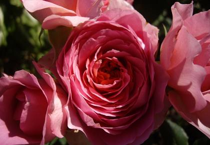 Роза Amandine Chanel (Амандин Шанель). Цветки розово-малиновые с белой лицевой стороной лепестков, среднего размера, объединены в соцветия по 5-7 штук. Аромат хороший, фруктовый. Высота 100 см, ширина 50 см. Листья блестящие. Повторное цветение очень хорошее.