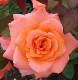 Цветки могут становиться лососево-розовыми по краям по мере старения, но всегда производят впечатление оранжевых или абрикосовых. Цветки появляются по одному на длинных побегах и хороши для срезки. Куст высокий, сильнорослый, с крупной темно-зеленой листвой. Роза больше подходит для сухого жаркого климата.