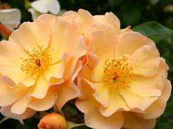 Обильноцветущая невысокая роза, покрыта цветами в течение всего сезона. Цветки медно-желтые, выгорают до кремово-желтых, в кистях по 5-8 цветков.