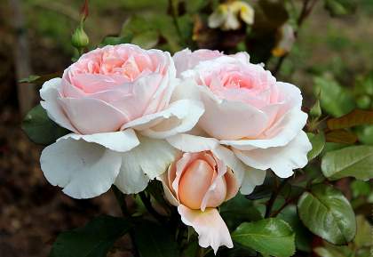 Роза Andre Le Notre (Андре Лё Нотр). Цветки раскрываются из шаровидных бутонов, показывая закрученный центр в старинном стиле. Цвет, и то, как он меняется со временем, очень красивый, т.к. внешние лепестки практически белые (точнее фарфорово-розовые), в то время как центр цветка насыщенно-розовый, с абрикосовыми тонами у основания.
