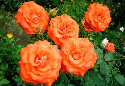 Роза чайно-гибридная Angelique (Анжелика). Бутоны крупные, овальные, раскрываются медленно. Цветки яркие, лососево-оранжевые, светящиеся, крупные, махровые, с приятным ароматом, одиночные, на прочных, длинных цветоносах.