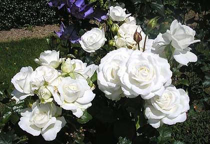 Роза Annapurna (Аннапурна). Исключительная белая роза со сверкающими цветками и мощным медово-розовым ароматом. Цветки классической формы, махровые (до 25 лепестков), белые с оттенками.
