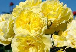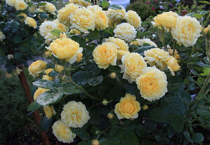 Роза Anny Duperey, Yellow Meilove (Анни Дюпере, Йеллоу Мейлав). Цветок плотный, золотисто-жёлтый или лимонно-жёлтый, диаметром 8-9 см, не выцветает. Цветы одиночные или в кистях. Аромат насыщенный, смесь ароматов розы и цитрусовых. Листва тёмно-зелёная, плотная, устойчивая к болезням. Куст высотой 80-110 см.