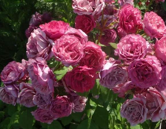 Роза спрей Aoi (Аои). Японская селекция. Цветки очень ароматные, пахнут малиновый. Цветки махровые, около 5-6 см в диаметре, собраны в соцветия до 10 шт. Высота куста 60 см, ширина 40 см. Цветение повторное. Великолепная роза для клумб и срезки. Устойчивость к болезням высокая.