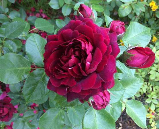 Роза плетистая Attleborough (Этлборо). Клайминг. Цветы махровые, ярко-красного цвета. Аромат умеренный, мускусный. Куст высокий, вертикальный, густой. Листва здоровая, глянцевая, средне-зеленая.