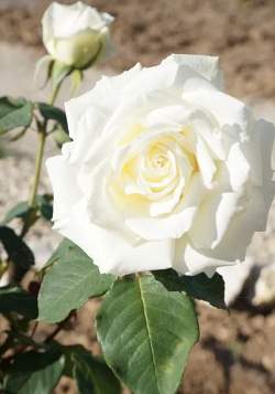 Роза Avalanche (Аваланш). Цветки белые, крупные (10 см в диаметре), махровые (25 лепестков). Бутоны высокие, классической формы с высоким центром. Открытый цветок чашевидный. Куст вертикальный, листья матовые. Прекрасная роза для срезки.