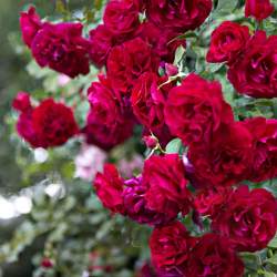 Роза плетистая Baikal (Байкал). Очень надёжная плетистая роза насыщенно-красного цвета, не выгорающая на солнце. Цветки махровые, до 35 лепестков, собраны в соцветия. Аромат мягкий. Кусты энергичного роста, хорошо разветвлённые. Листва тёмно- зелёная, глянцевая; молодая — с антоциановыми тонами; довольно устойчивая к болезням.